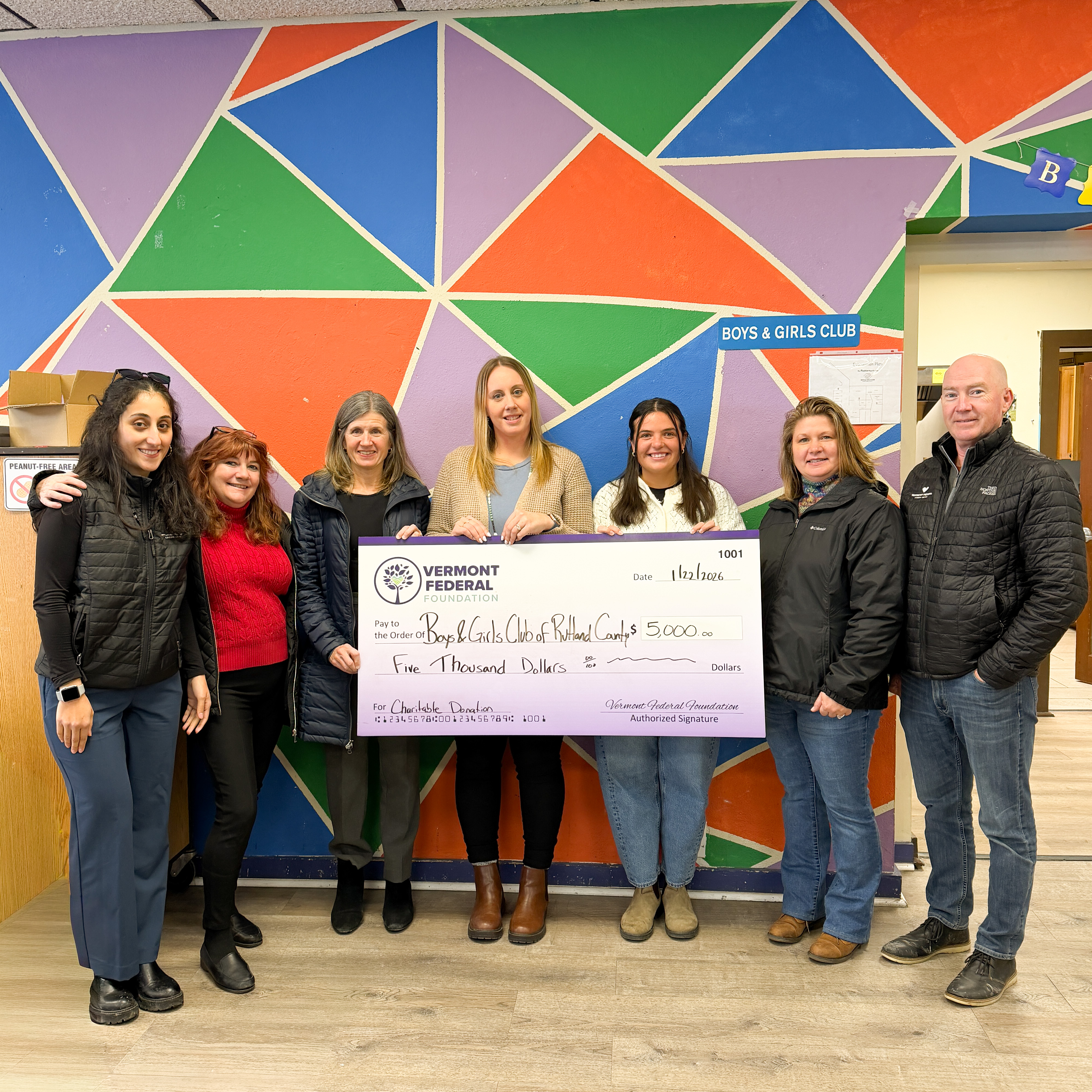 Vermont Federal's donation to The Boys & Girls Club of Burlington will help fund their Early Promise Program, and the donation to The Boys & Girls Club of Rutland will help fund their after-school programming blocks including academic support, skill building clubs, STEM programming, and mentoring programming.