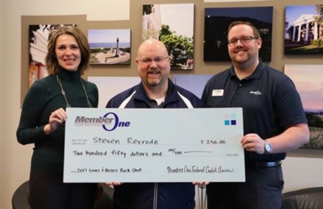 Member One has participated in this event for several years and hosted the “Puck Shot Game” where attendees enter a drawing for their chance to take a shot at goal and win up to $500. This year, Steven Rexrode of Roanoke made the shot from the blue line and was awarded $250 by Member One FCU.
