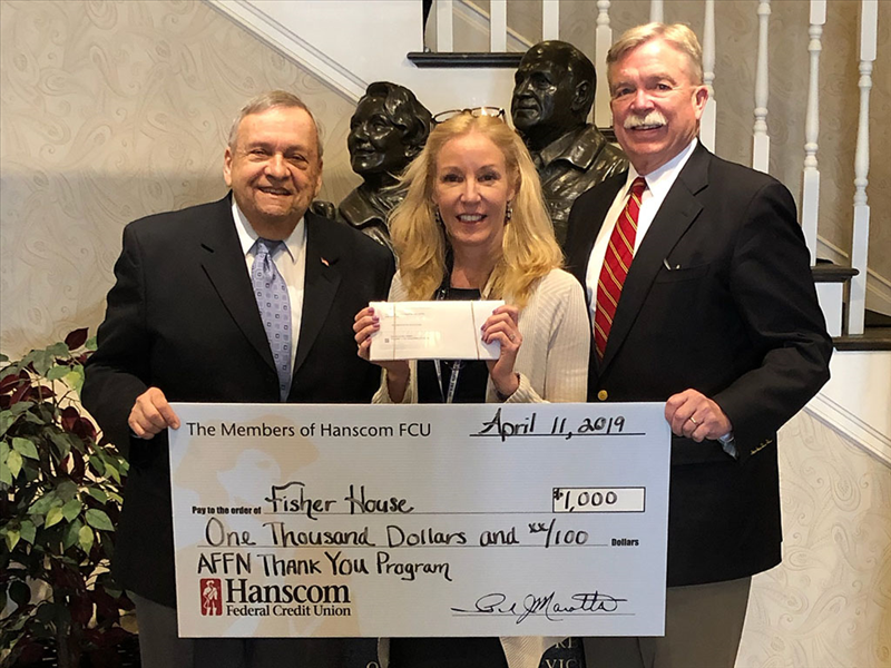 Fisher House provides military families with safe, comfortable lodging at no charge while their family member receives medical treatment through the U.S. Department of Veterans Affairs (VA). “We want to assist military families through a traumatic experience,” said Paul Marotta, Hanscom FCU’s Chairman of the Board. “Fisher House offers military family members a home away from home at no cost so they don’t have to worry about paying hotel bills. We’re pleased to join with AFFN in support of a critical resource for military families in crisis.”