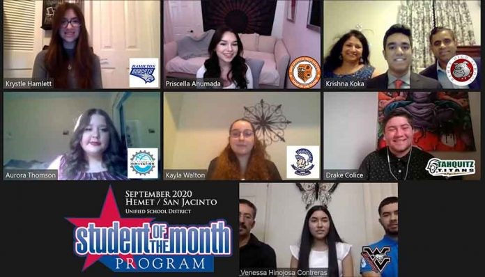 HEMET, CA – The Hemet San Jacinto Student of the Month program began its eighth year of recognizing local seniors for demonstrating character, integrity, love of learning, involvement in school activities, athletics and community service. Students are nominated by teachers or other school personnel for making a difference in their home, school and community.